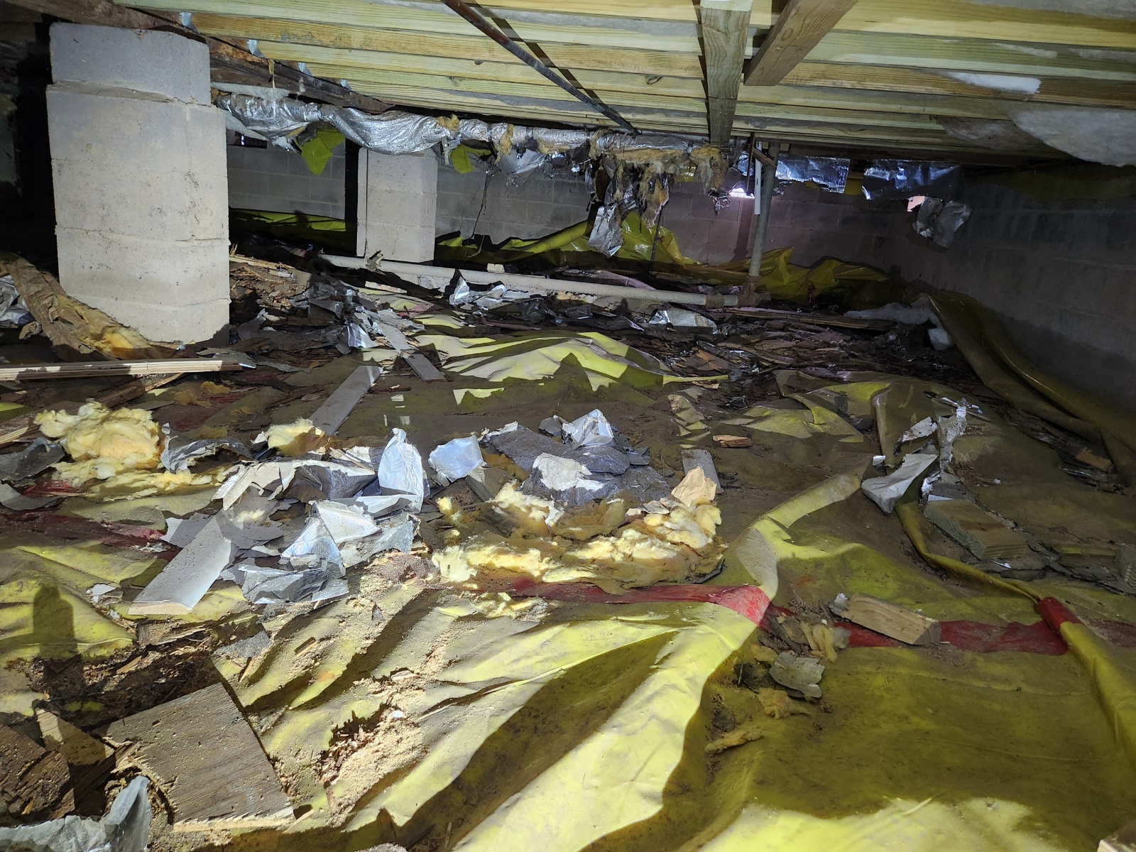 Insulation removal, sanitation, and replacement after wildlife contamination.