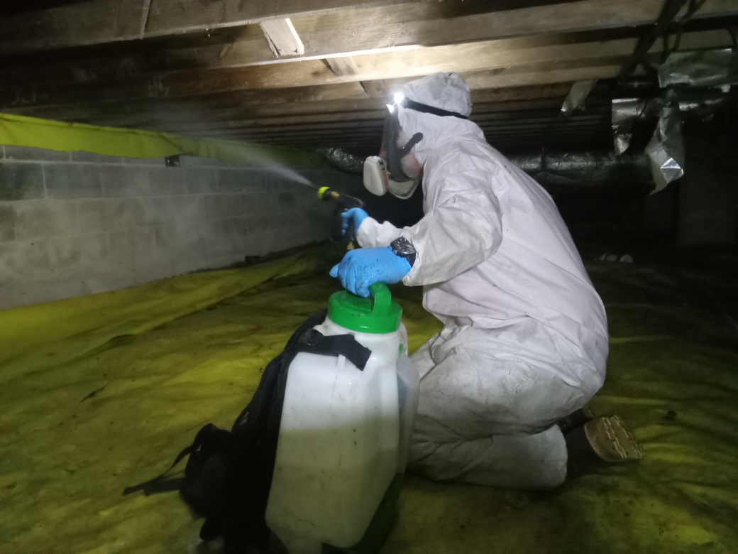 Insulation removal, sanitation, and replacement after wildlife contamination.